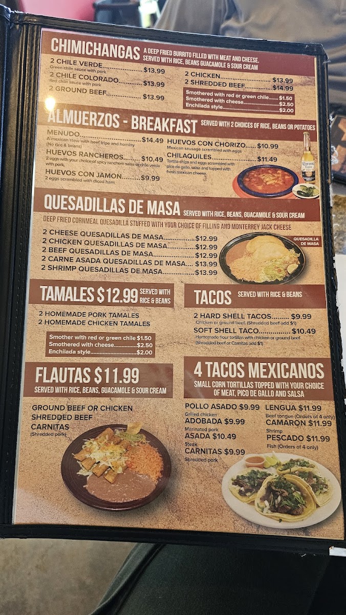 Delicious food, great service. We loved the chips and salsa, The flautas, steak tacos, and quesadillas de masa. Will come again!